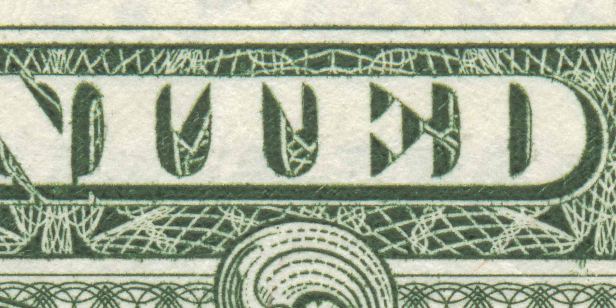 I don’t remember exactly when I first noticed it, but I’ve always liked the the style of engraved lettering used on U.S. currency. At first glance, it looks like a 19th century “fat face”. But it has some distinctive characteristics, such as the really deep brackets on the serifs and the triangular serifs on the arms of the E, F, L, and T.