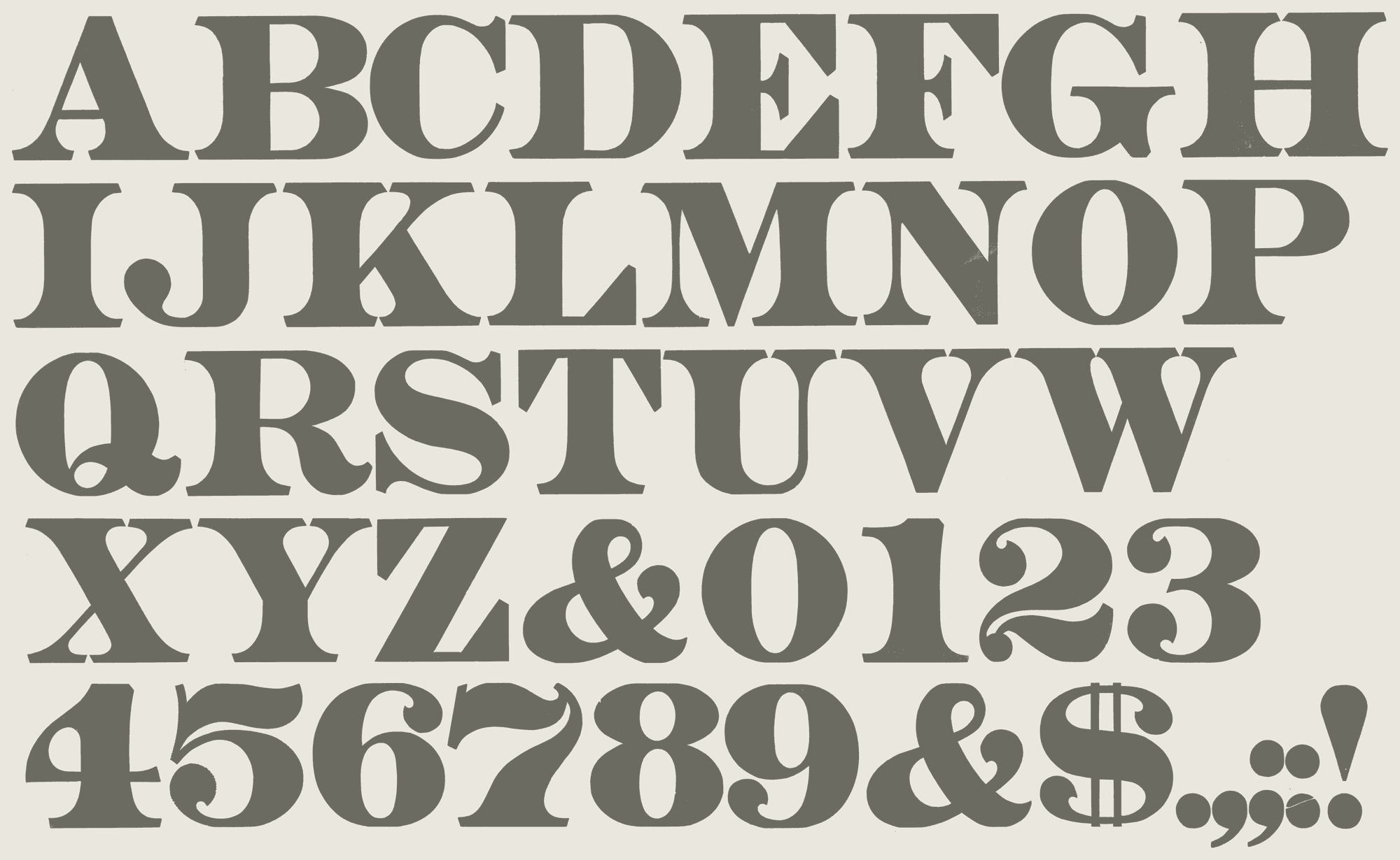 The drawing of these letterforms included a slight decrease in the contrast of light and heavy strokes by increasing the overall weight of the lightest strokes, an exaggerated bracketing of the serifs, and a gradual tapering of the stems.