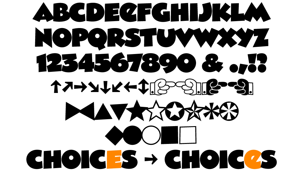 I tried to push the weight as far as I could without sacrificing legibility. It has an alternate lowercase “s” (in case you’re not into that old-school cursive form) and a set of matching dingbats and symbols.