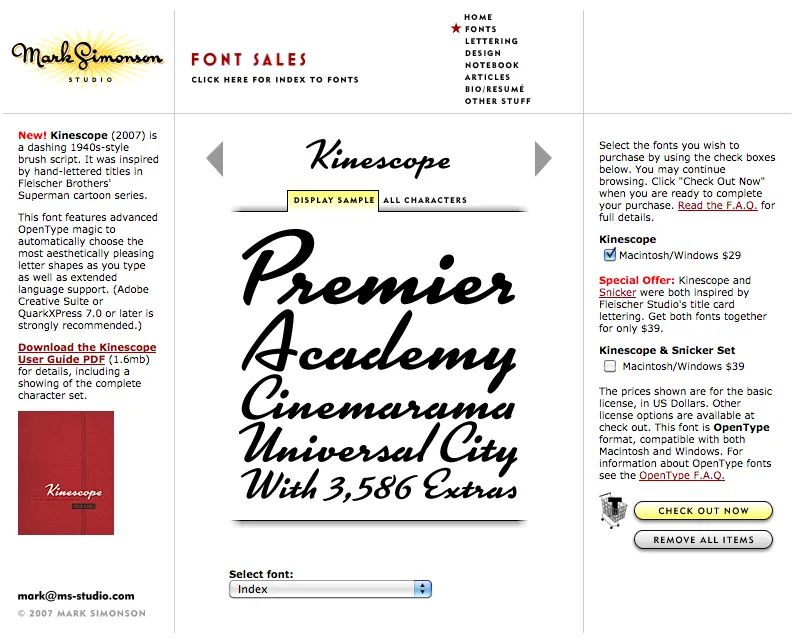 At one time, early in the history of Mark Simonson Studio, I sold fonts directly from my website. This was back in the early 2000s when there weren’t a lot of options.