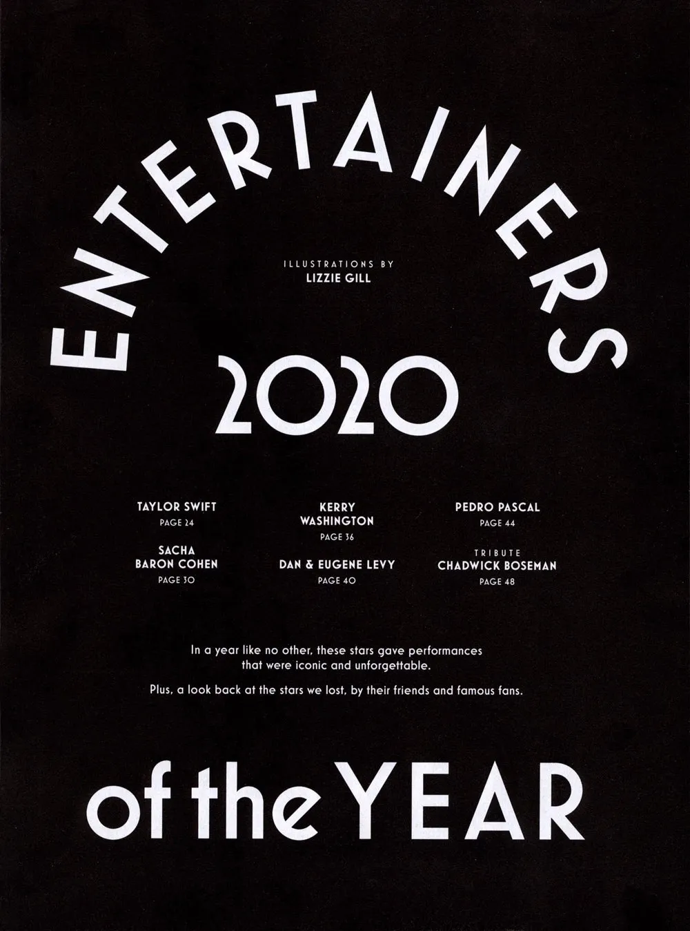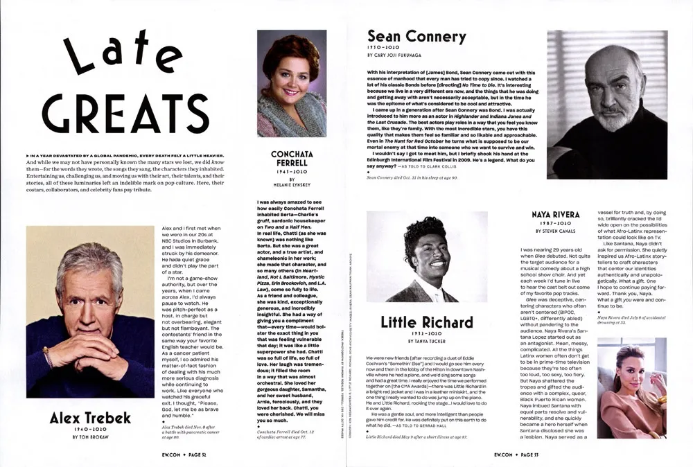 The section closes with several pages about entertainers who died in 2020.