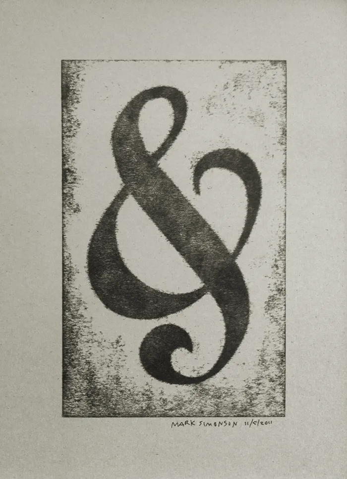 Still, it was great how they tied all the workshops around a common purpose—creating a portfolio of prints (including the portfolio itself). You can see one of my prints above, a pressure print from a hand-cut plate based on a free-form ampersand design.