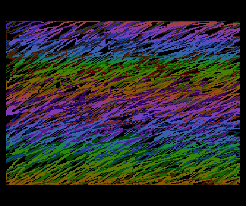Mode 10 was also interesting since it let you use up to nine arbitrary hues and shades at once. I made a version that worked in this mode and then added a way to save and load pictures. Next I changed it so you could move the brush around without painting.