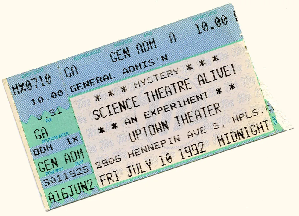 In the mean time, above is something from my scrapbook: A ticket stub from the first MST3K live show, performed at the Uptown Theater in Minneapolis in 1992. All I will say about it is, my face ached from laughing.