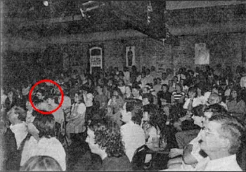 A photo of the audience at the Comedy Gallery event that appeared in the MST 3000 Satellite News, Vol. 1, No. 2. You can see me and Pat on the left.