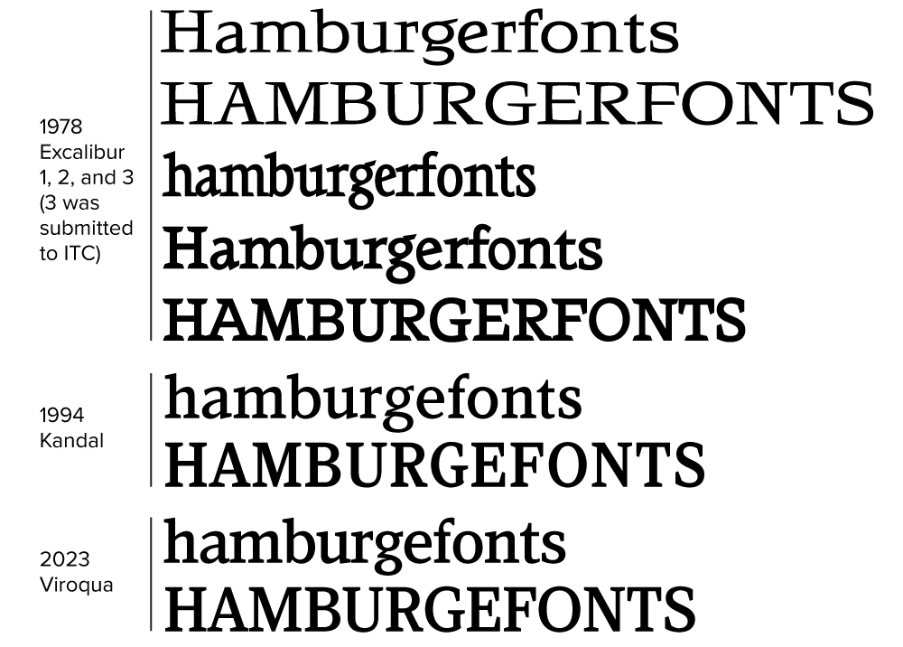 Viroqua is an improvement over Kandal in every way I could think of, while retaining its core design concept: A hybrid combining modern proportions, Jenson-like details, and a bit of slab serif DNA. Nearly every character has been reworked or refined. The original italic especially suffered from my lack of experience as a type designer. I basically started over. I’ve got three more decades of experience and I hope it shows.