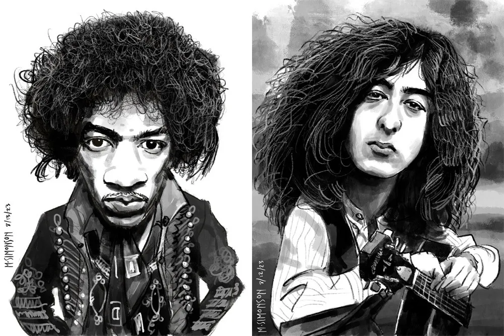 Jimi Hendrix and Jimmy Page.