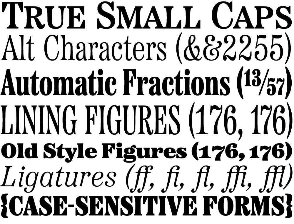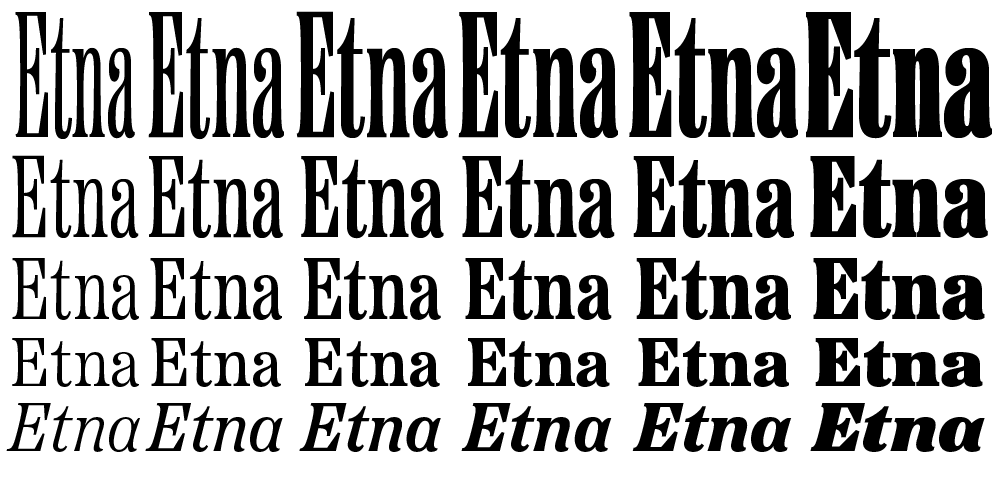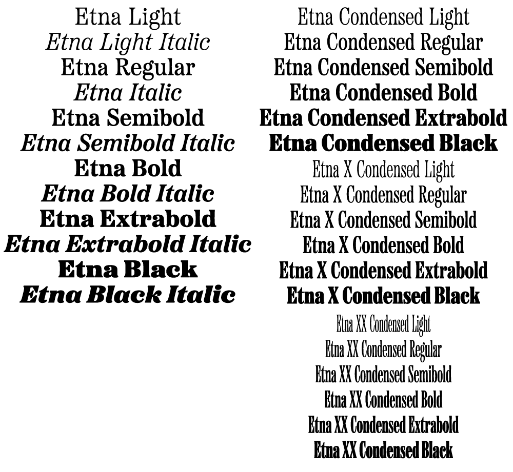 The Etna family also includes three different condensed widths in all six weights intended for display use. These are meant to be used LARGE.