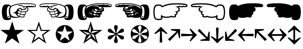All 30 styles include four different figure styles, alternate characters, true small caps, and a selection of dingbats, including arrows, stars, asterisks, and manicules (pointing hands).