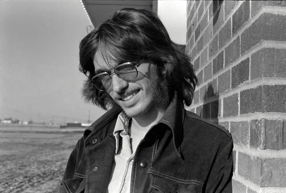 Me, in spring of 1976, about the time I discovered type design, standing outside the art department at NHCC. (Photo by Dan Bagaus)