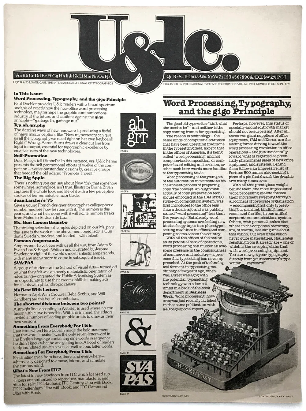 The issue of U&lc I discovered in the graphics classroom: Volume Two, Number Three, Sept. 1975.