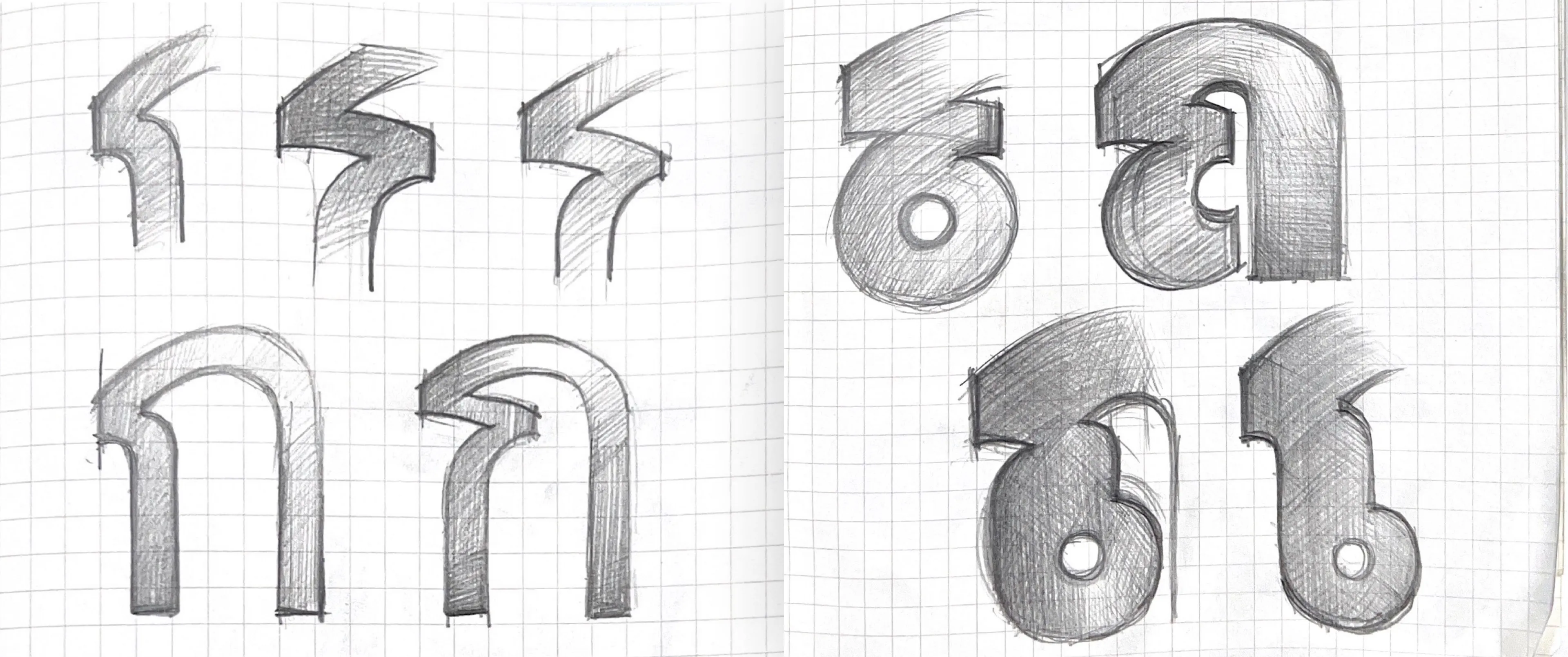 The Latin lowercase u and noNu-thai may look identical in terms of structure, but details such as the negative space under the bowl have to be amplified to avoid confusion when paired with letters such as moMa-thai.
